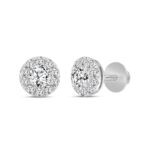 LADIES STUD EARRINGS 1CT ROUND DIAMOND 14K WHITE GOLD