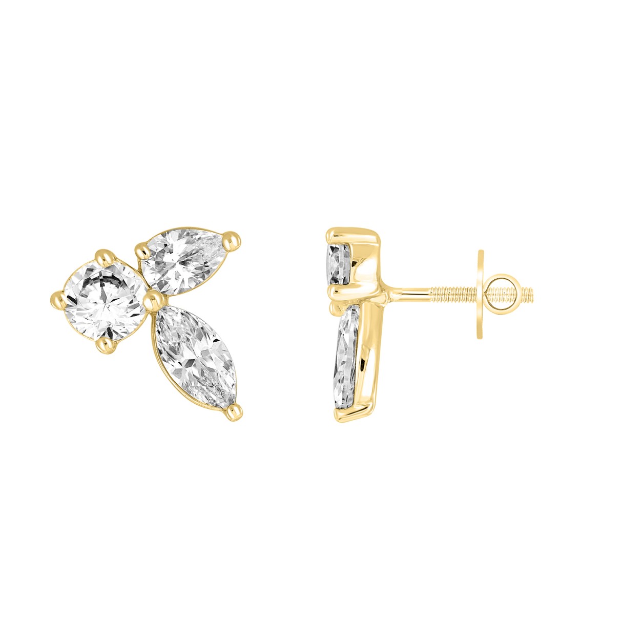 LADIES STUD EARRINGS 3CT PEAR/ROUND/MARQUISE DIAMOND 14K YELLOW GOLD