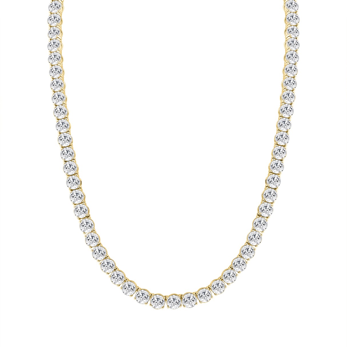 LADIES TENNIS NECKLACE 85.00CT ROUND DIAMOND 14K YELLOW GOLD
