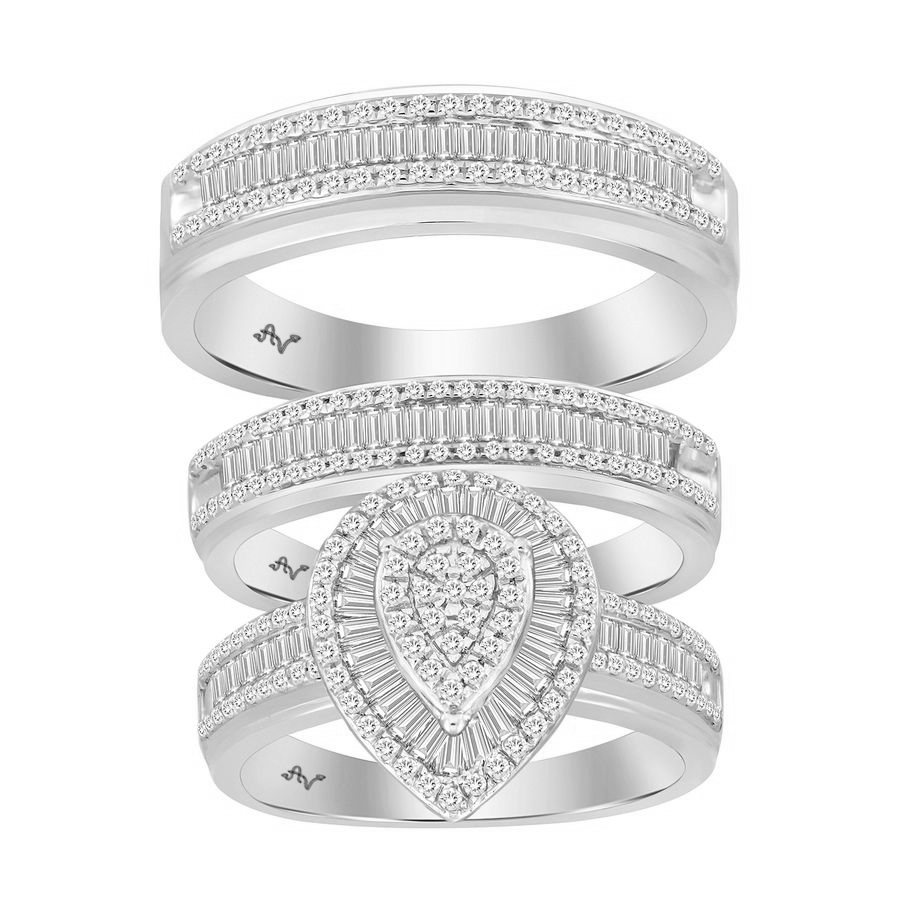 LADIES TRIO SET 1.00CT ROUND/BAGUETTE DIAMOND 10K WHITE GOLD