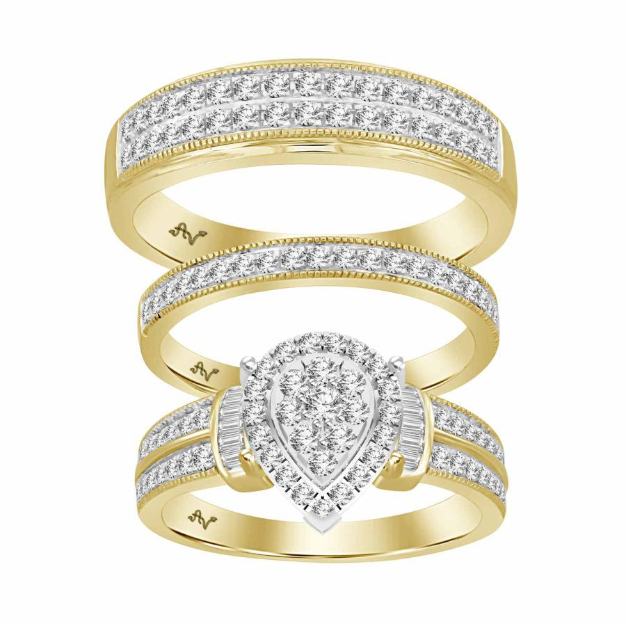 Home Rings LADIES TRIO SET 1.00CT ROUND/BAGUETTE DIAMOND 10K YELLOW GOLD