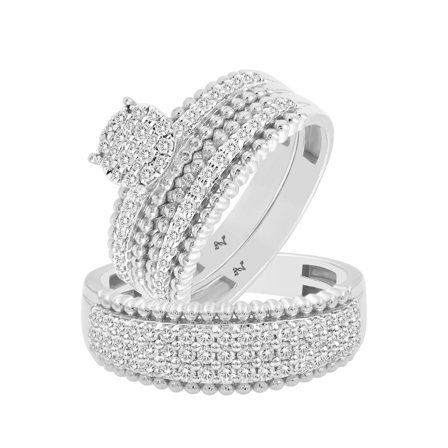 LADIES TRIO SET 1.00CT ROUND DIAMOND 10K WHITE GOLD $1,859.99