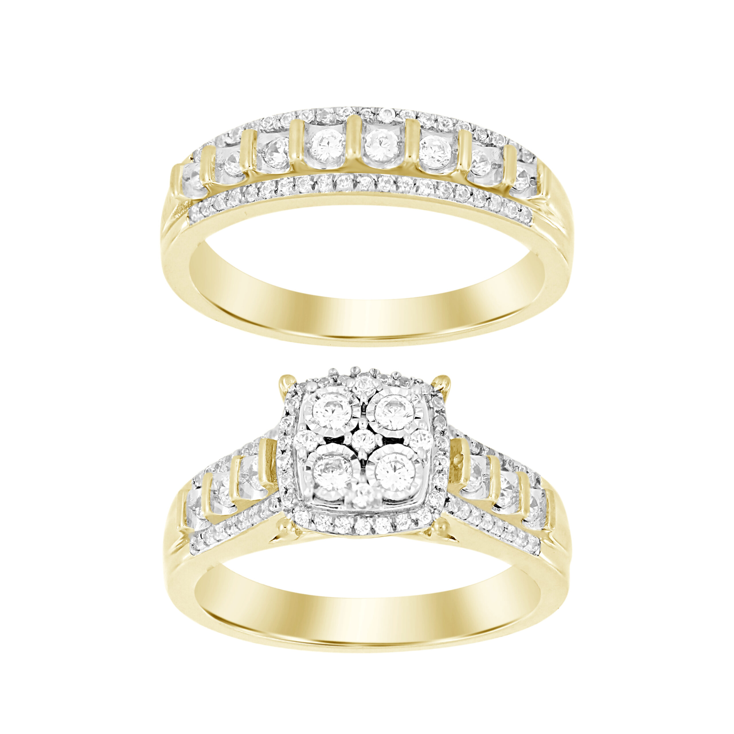LADIES TRIO SET 1.00CT ROUND DIAMOND 10K YELLOW GOLD