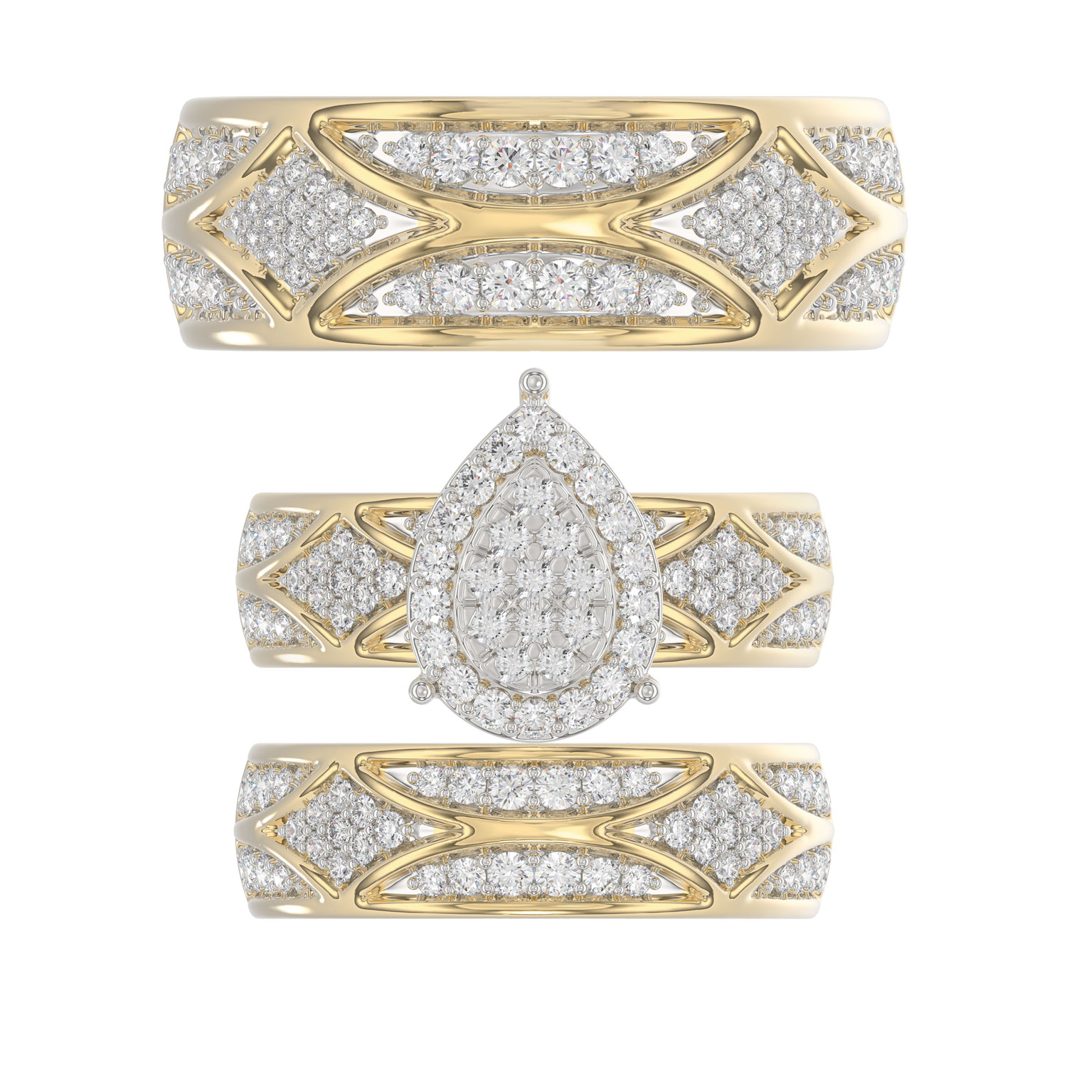 LADIES TRIO SET 1.33CT ROUND DIAMOND 10K YELLOW GOLD