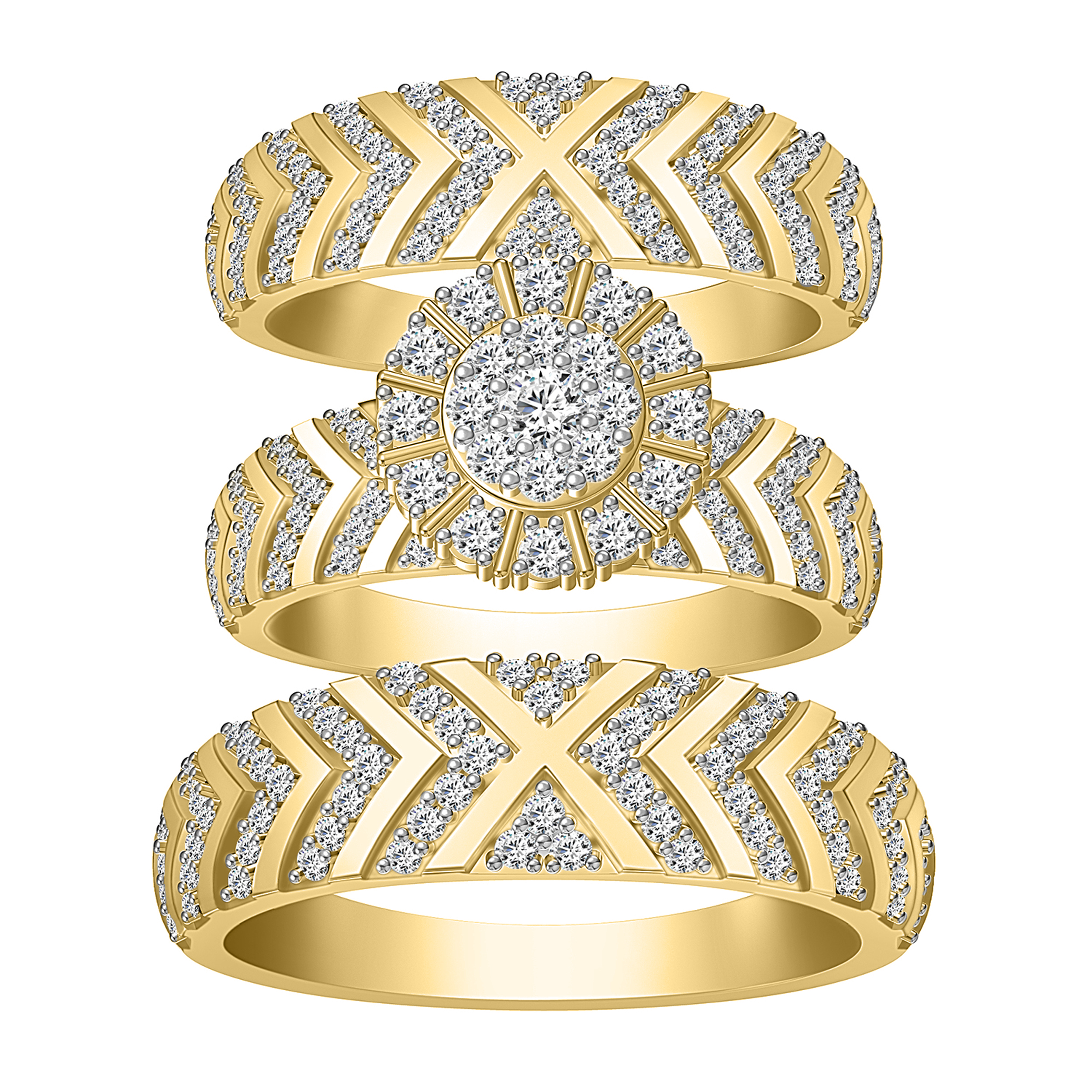 LADIES TRIO SET 1.50CT ROUND DIAMOND 10K YELLOW GOLD