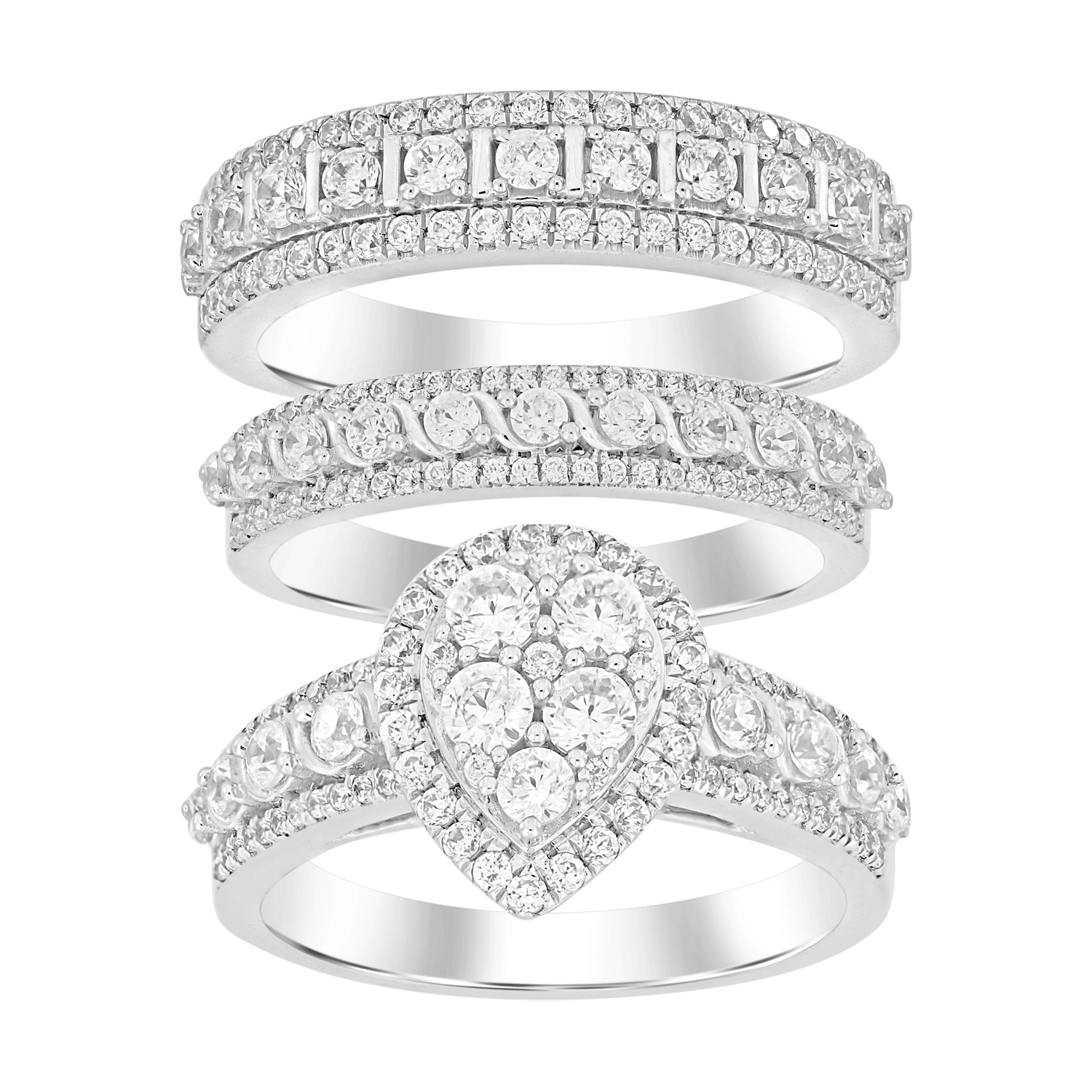 LADIES TRIO SET 2.00CT ROUND DIAMOND 10K WHITE GOLD