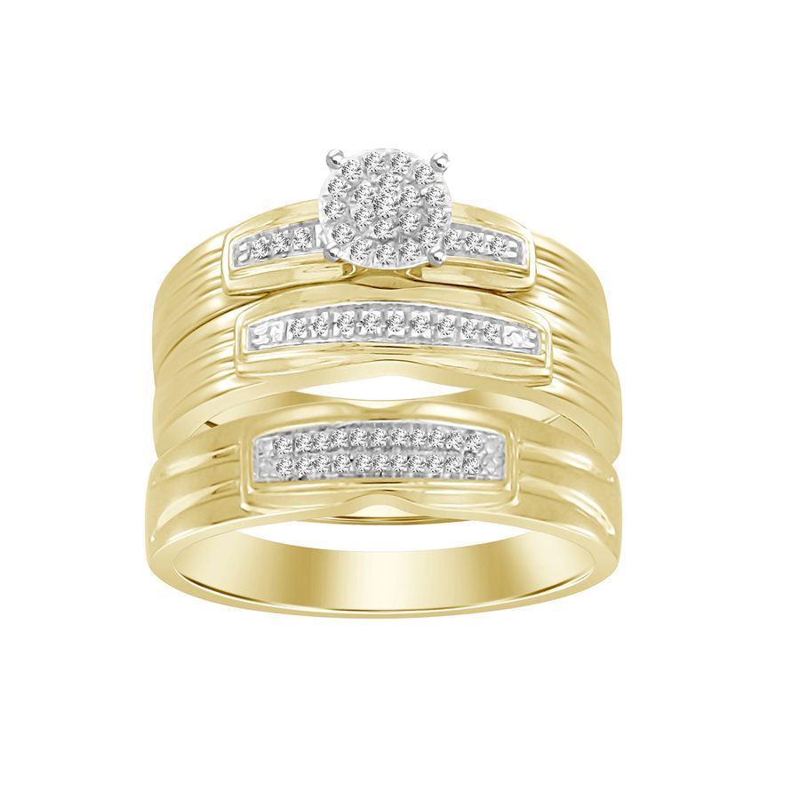 LADIES TRIOS SET 0.13CT ROUND DIAMOND 10K YELLOW GOLD