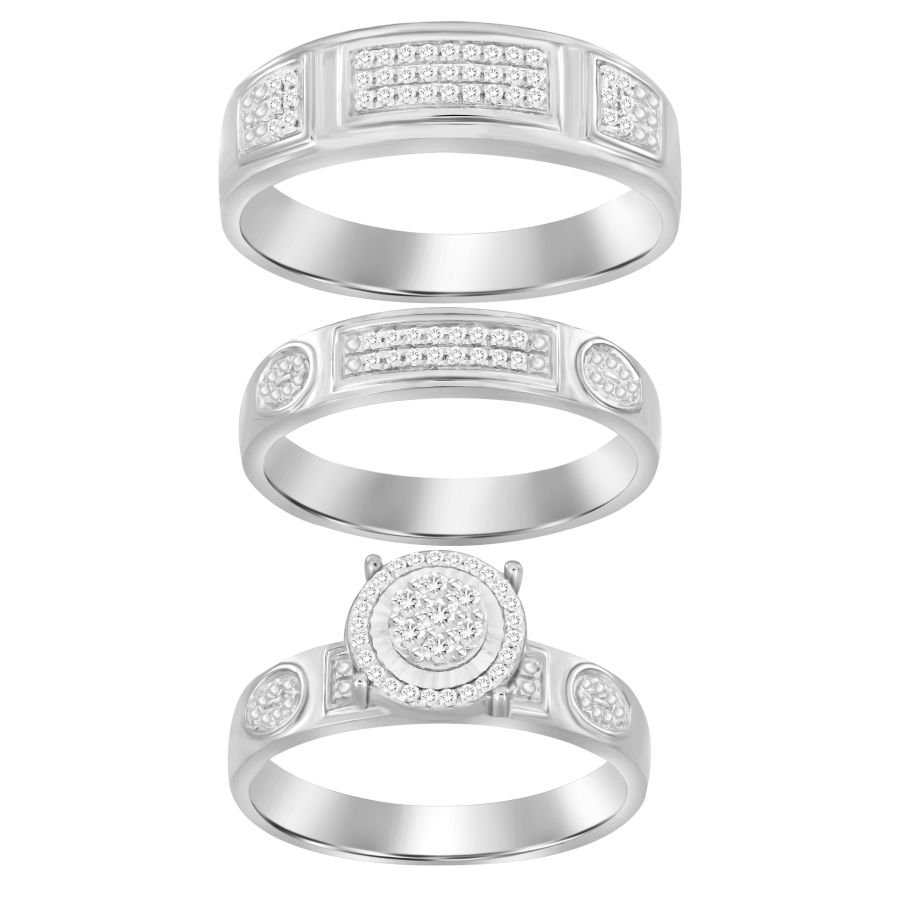 LADIES TRIOS SET 0.25CT ROUND DIAMOND 10K WHITE GOLD