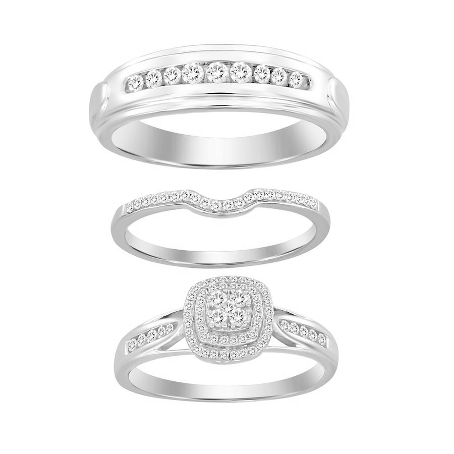 LADIES TRIOS SET 0.50CT ROUND DIAMOND 10K WHITE GOLD