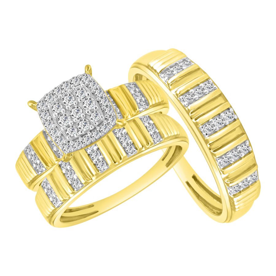 LADIES TRIOS SET 0.50CT ROUND DIAMOND 10K YELLOW GOLD