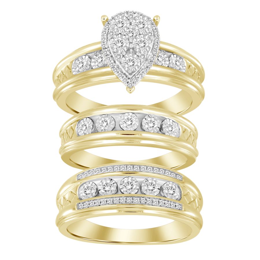 LADIES TRIOS SET 0.50CT ROUND DIAMOND 10K YELLOW GOLD