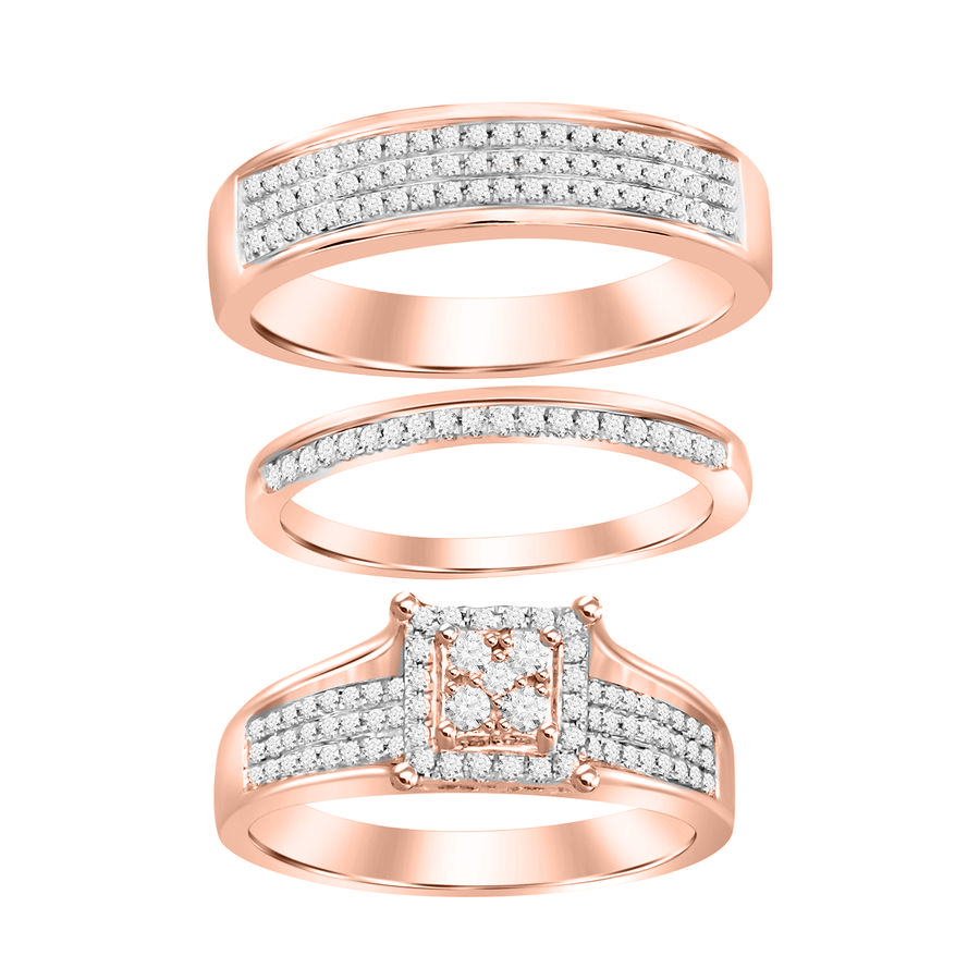 LADIES TRIOS SET 0.50CT ROUND DIAMOND 14K ROSE GOLD