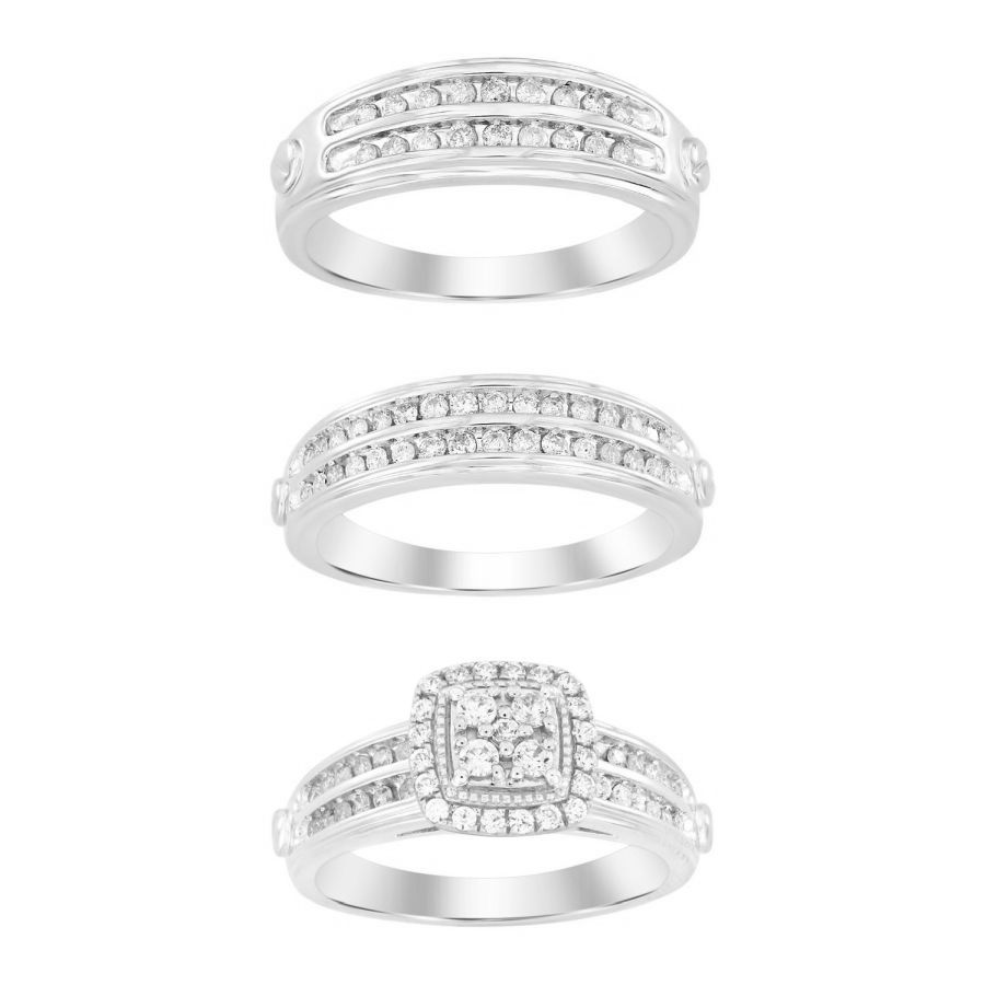 LADIES TRIOS SET 1.00CT ROUND DIAMOND 10K WHITE GOLD