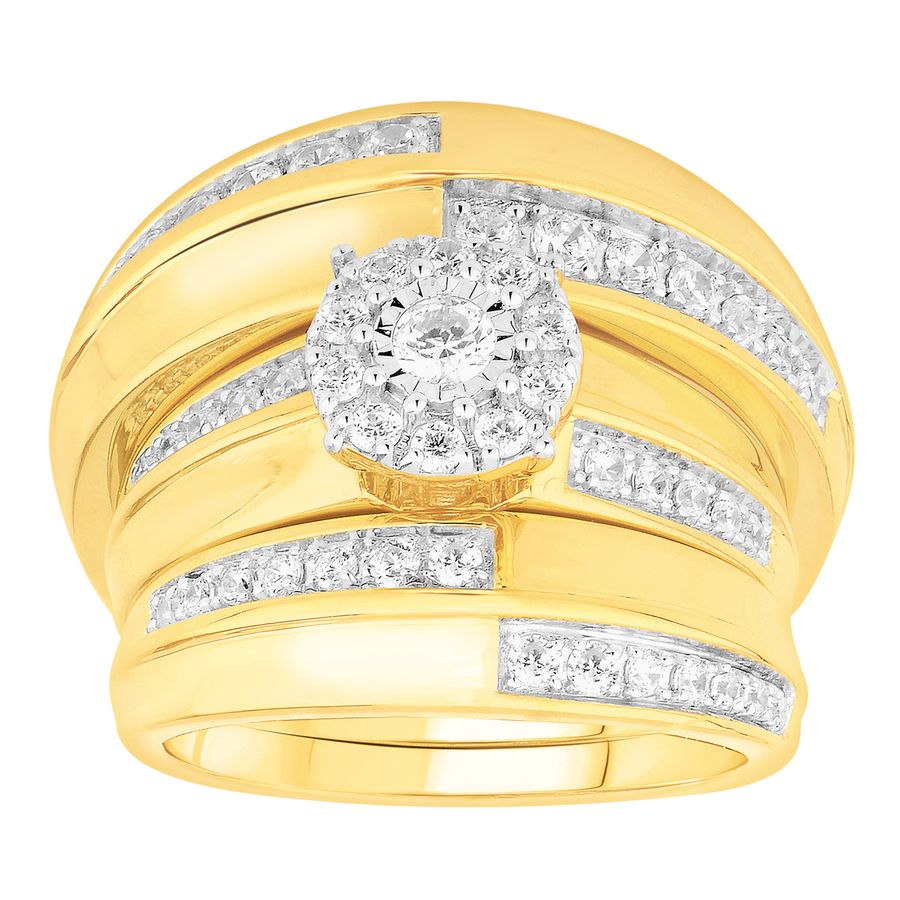 LADIES TRIOS SET 1.00CT ROUND DIAMOND 14K YELLOW GOLD