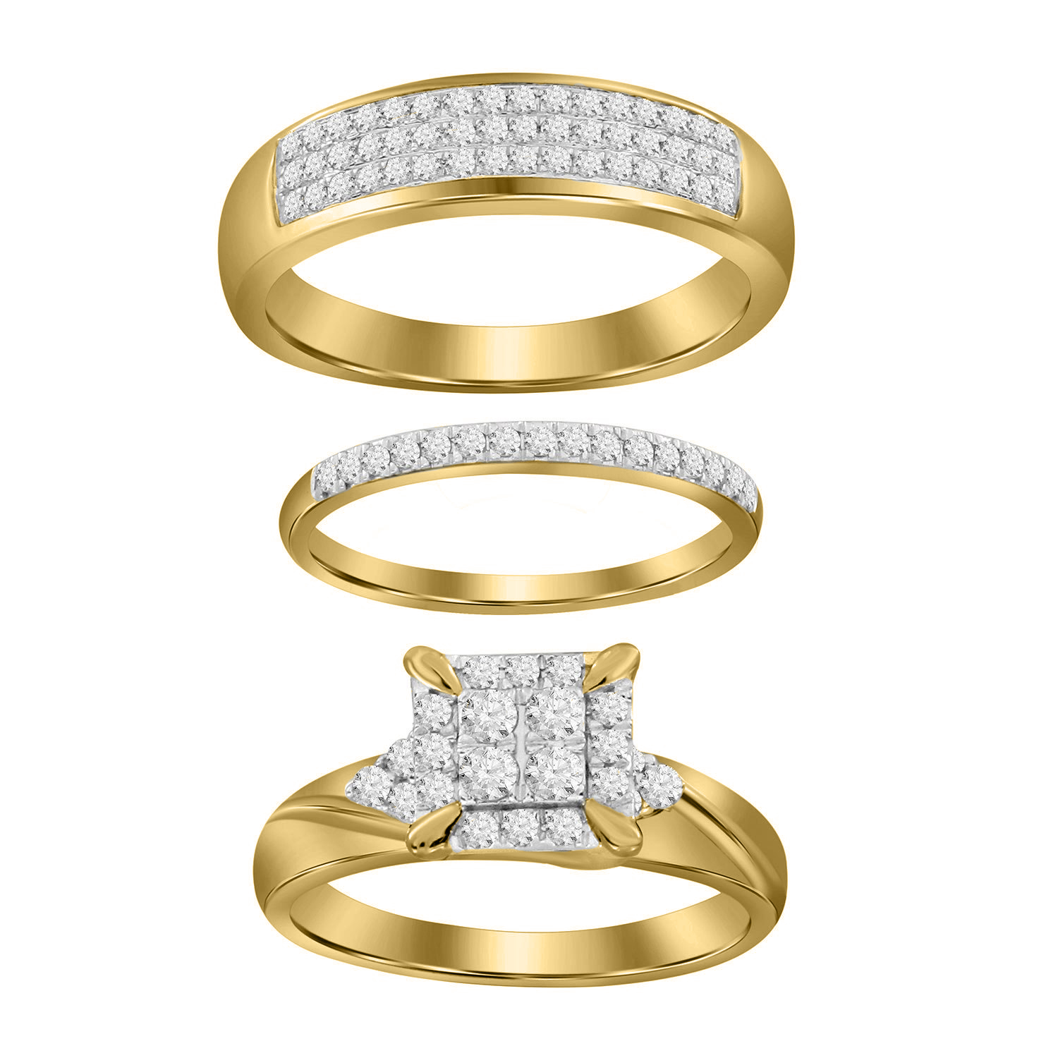 LADIES TRIOS SET RING 0.75CT ROUND DIAMOND 10K YELLOW GOLD