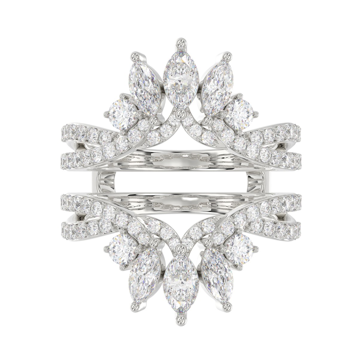 LADIES WRAP RING 2CT ROUND/MARQUISE DIAMOND 14K WHITE GOLD