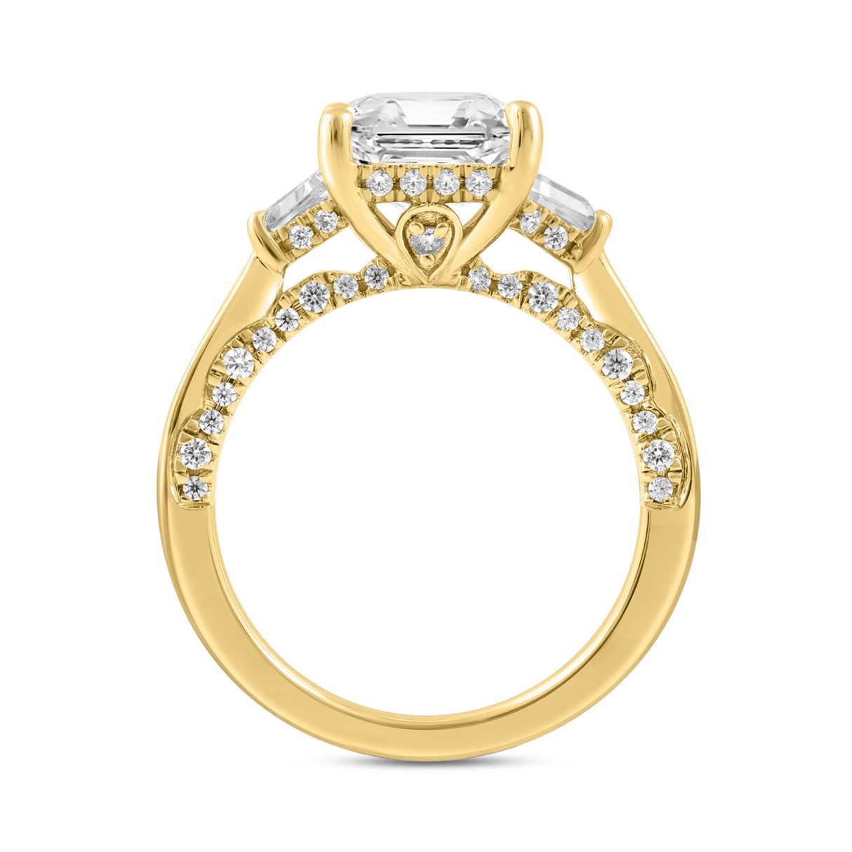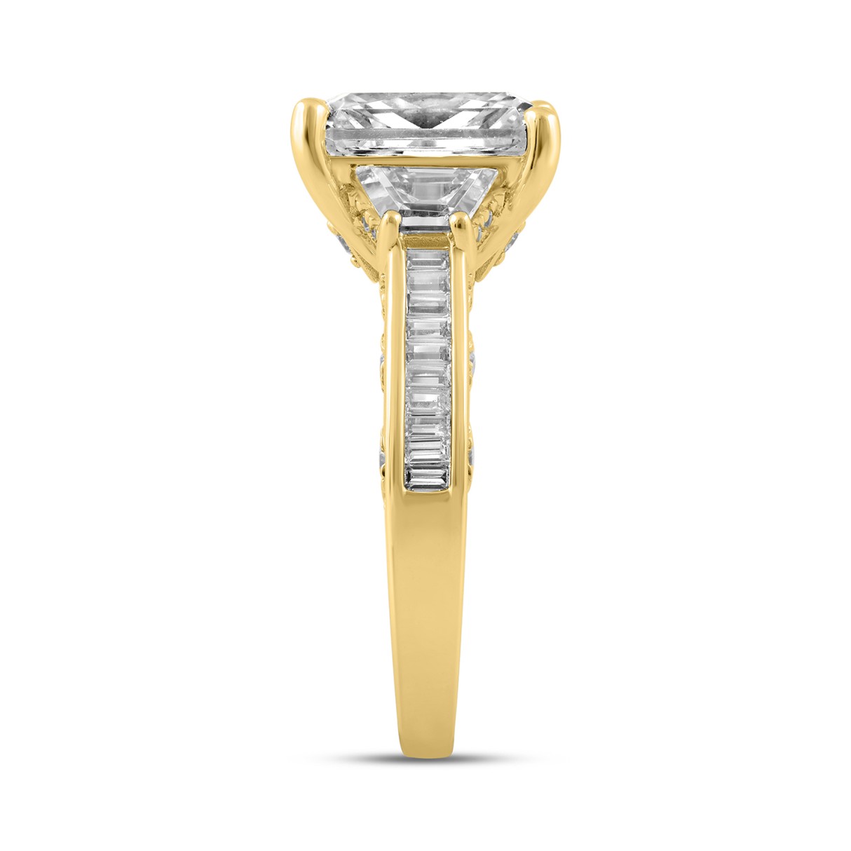 Luxury 14K Yellow Gold 4 1/4Ct Radiant & Round Lab Grown Diamond Engagement Ring 3.00Ct Radiant Center Stone With Trapezoid & Baguette Side Stones Tri
