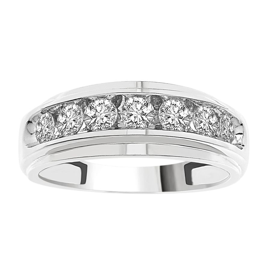 MEN’S BAND 1.00CT ROUND DIAMOND 18K WHITE GOLD