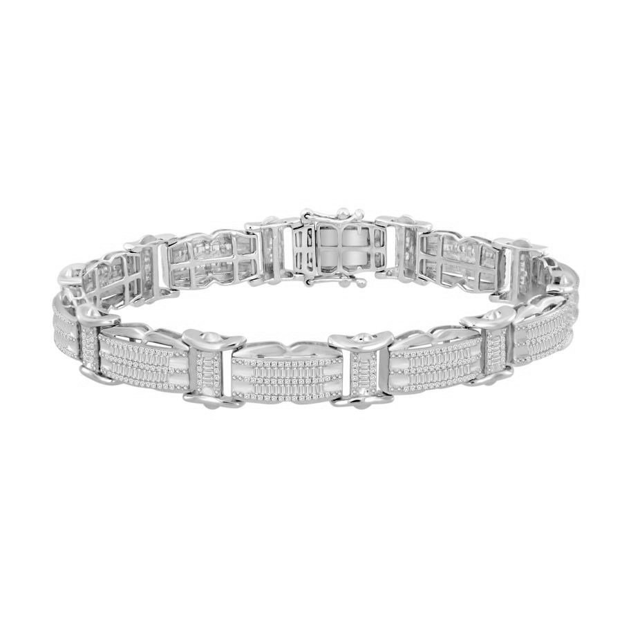 MEN’S BRACELET 3.00CT ROUND/BAGUETTE DIAMOND 10K WHITE GOLD