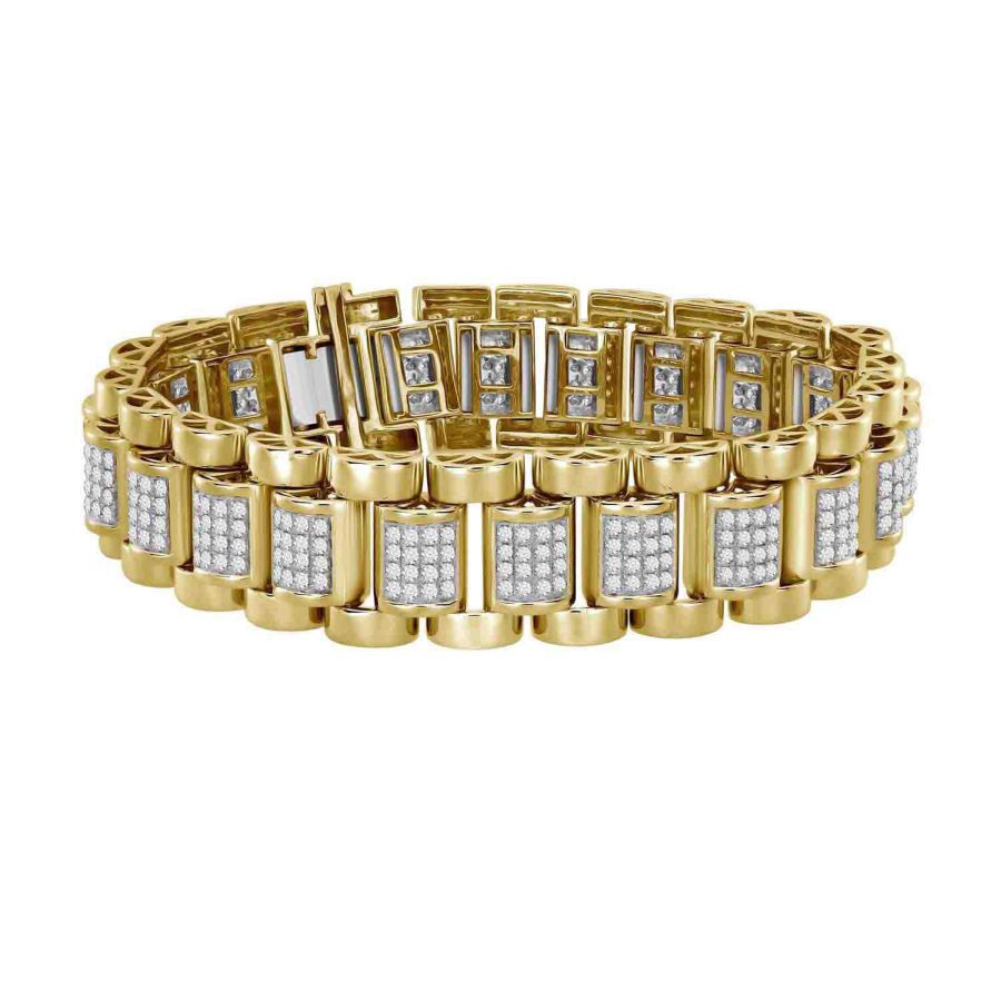 MEN’S BRACELET 5.00CT ROUND DIAMOND 10K YELLOW GOLD