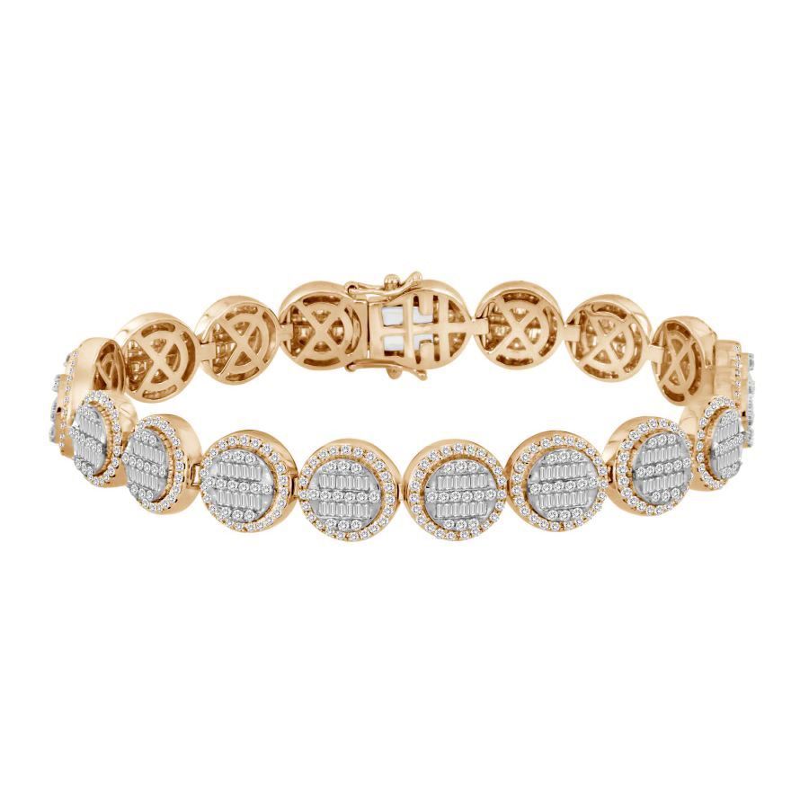 MEN’S BRACELET 6.25CT ROUND/BAGUETTE DIAMOND 10K ROSE GOLD