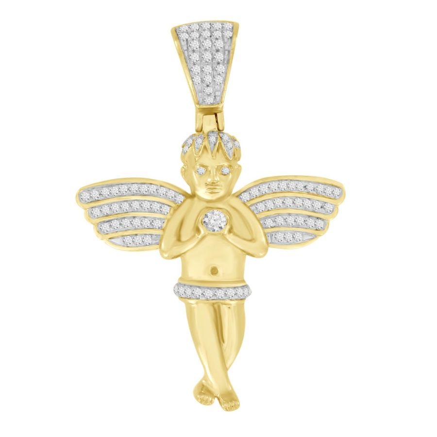 MEN’S CROSS CHARM 1.00CT ROUND DIAMOND 10K YELLOW GOLD