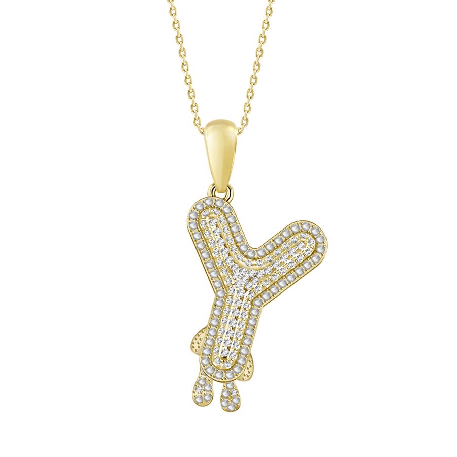 LADIES PENDANT WITH CHAIN 0.15CT ROUND DIAMOND 10K YELLOW GOLD