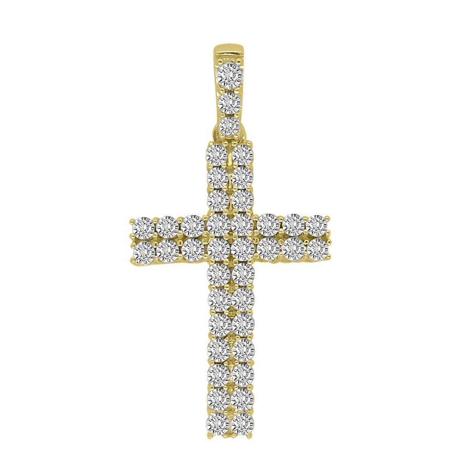 MEN’S CROSS CHARM 1.00CT ROUND DIAMOND 10K YELLOW GOLD
