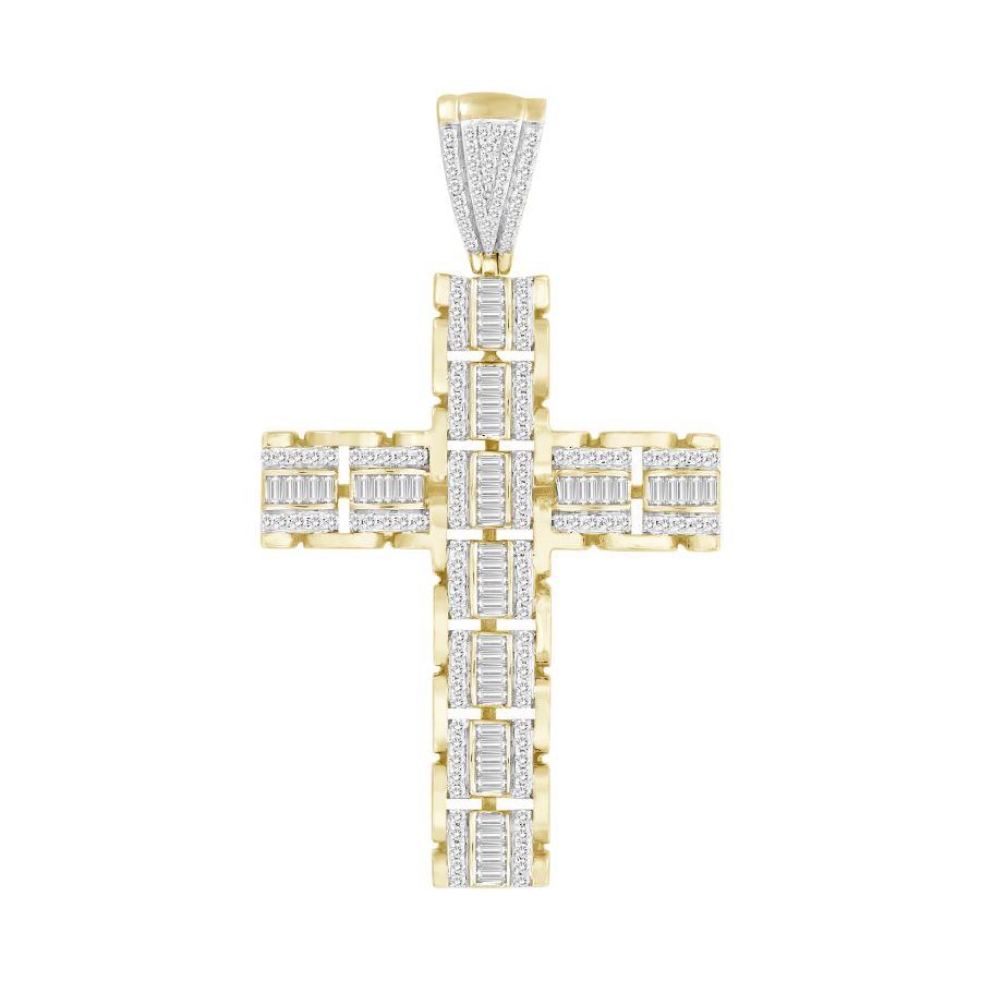 MEN’S CHARM 0.75CT ROUND/BAGUETTE DIAMOND 10K YELLOW GOLD