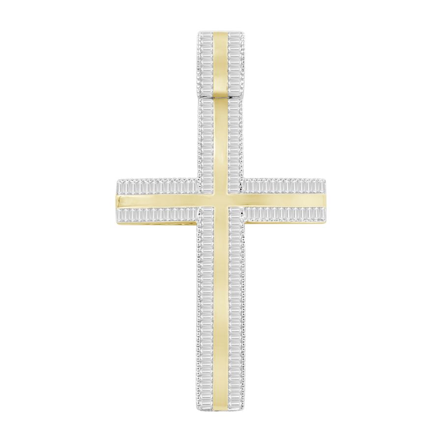 MEN’S CROSS CHARM 1.00CT ROUND DIAMOND 10K YELLOW GOLD
