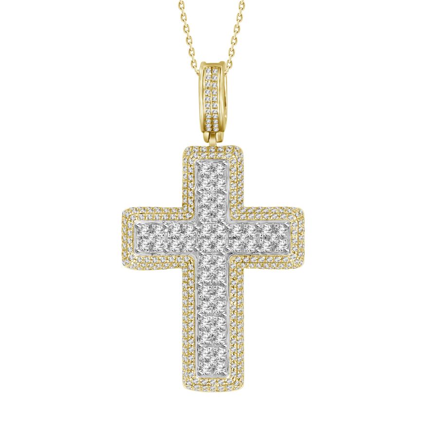 MEN’S CROSS CHARM 1.00CT ROUND/BAGUETTE DIAMOND 10K YELLOW GOLD
