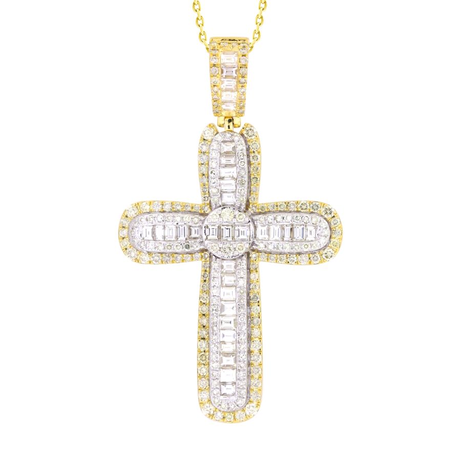 MEN’S CHARM 3.75CT ROUND/BAGUETTE DIAMOND 10K WHITE/YELLOW GOLD