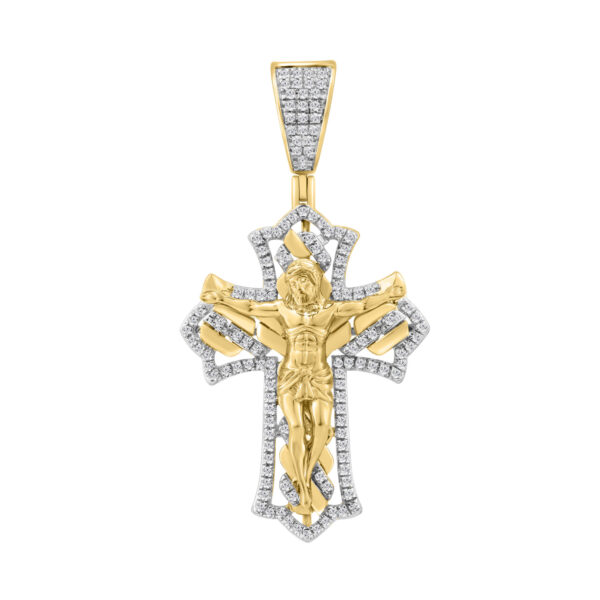 MEN’S CROSS CHARM 1.00CT ROUND/BAGUETTE DIAMOND 10K YELLOW GOLD
