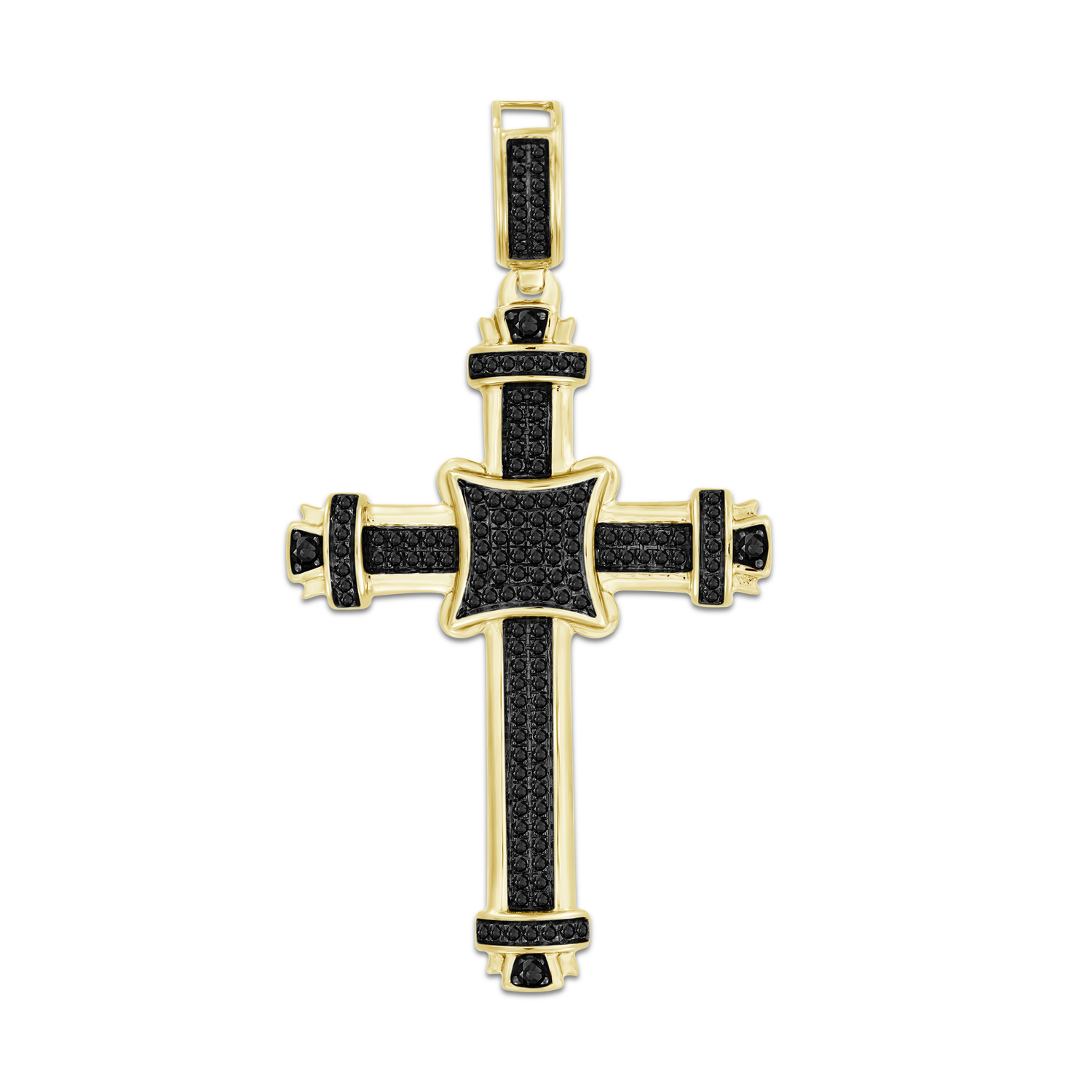 MEN’S CHARM PENDANT 0.50CT ROUND BLACK DIAMOND 10K YELLOW GOLD