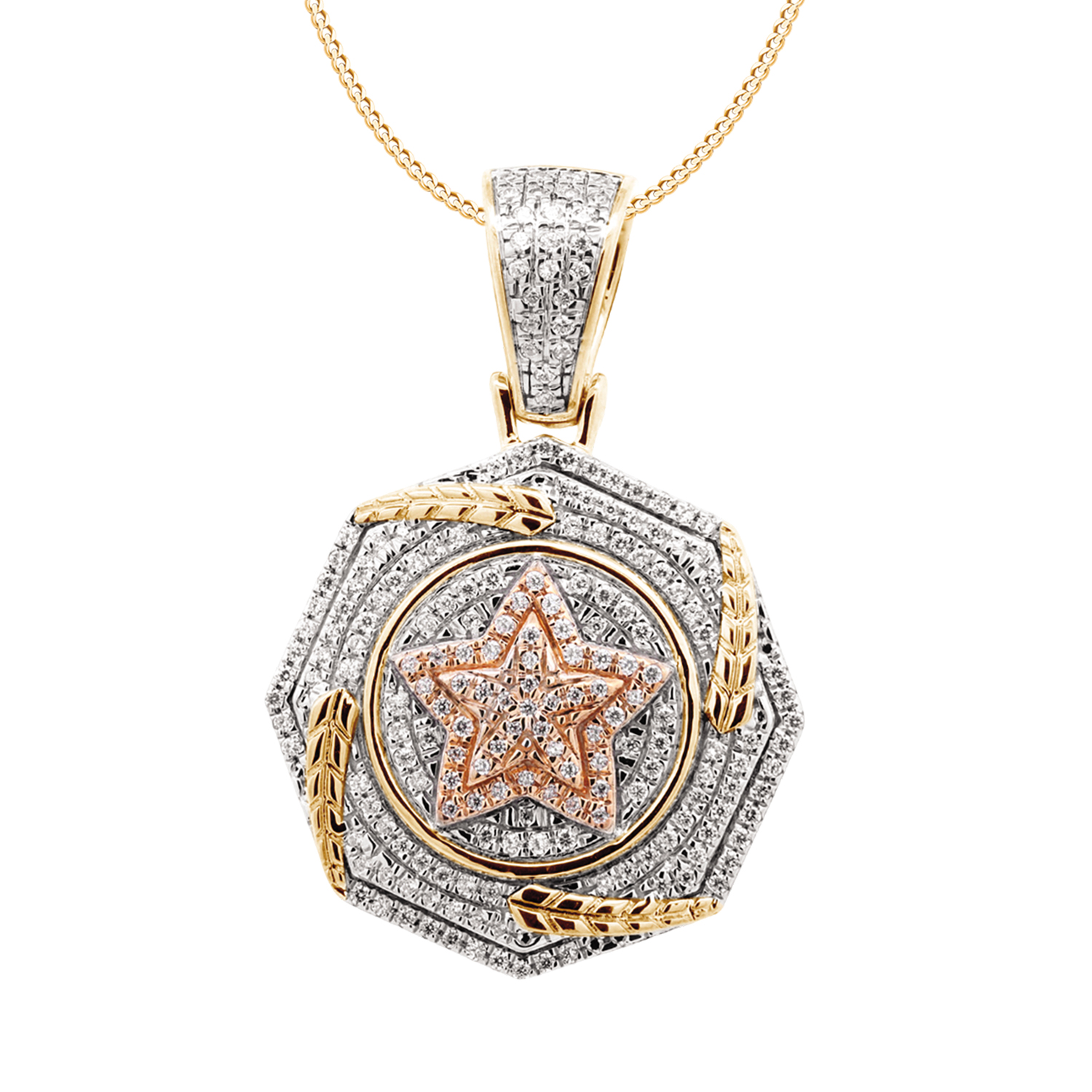 MEN’S CHARM PENDANT 0.50CT ROUND DIAMOND 10K YELLOW GOLD
