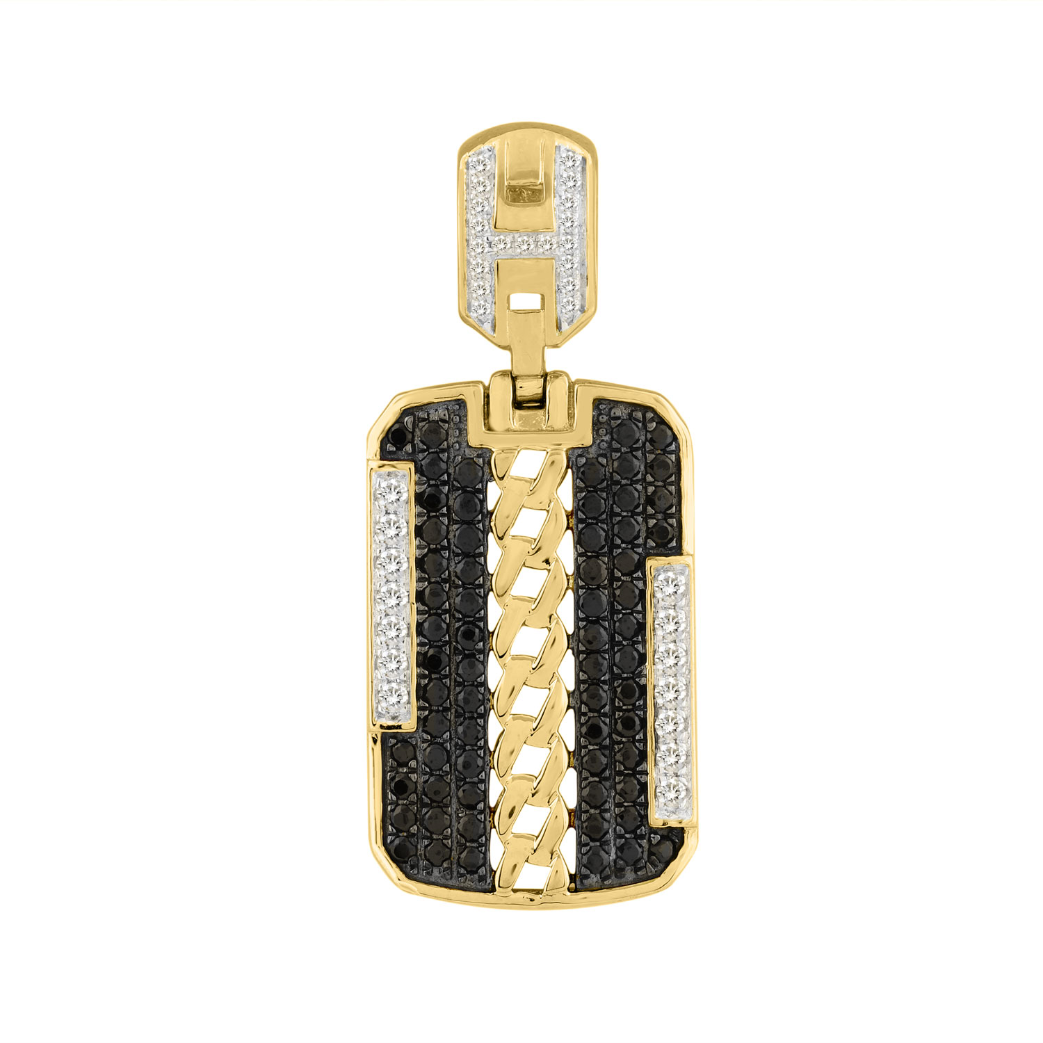 MEN'S CHARM PENDANT 0.75CT ROUND/ROUND BLACK DIAMOND 10K YELLOW GOLD