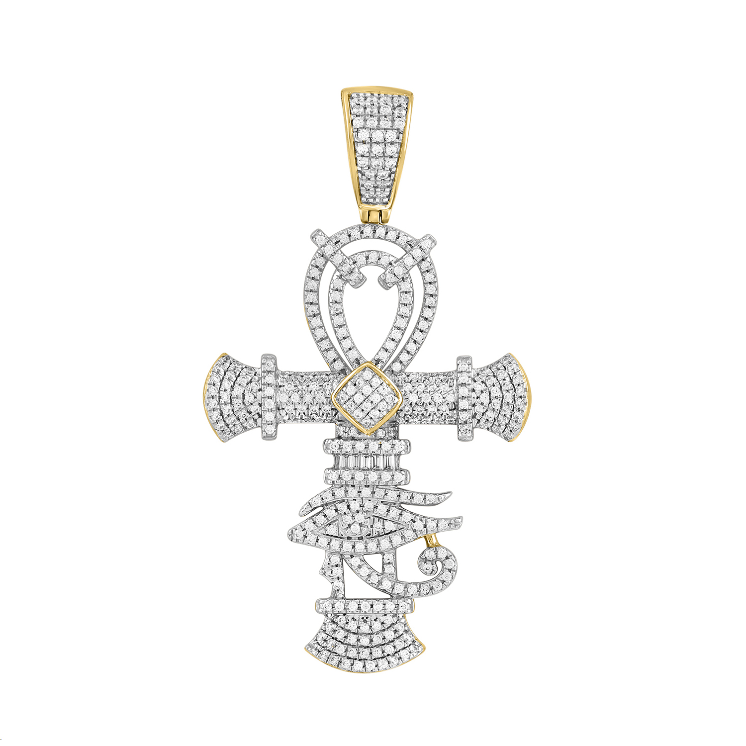 MEN’S CHARM PENDANT 0.80CT ROUND/BAGUETTE DIAMOND 10K YELLOW GOLD