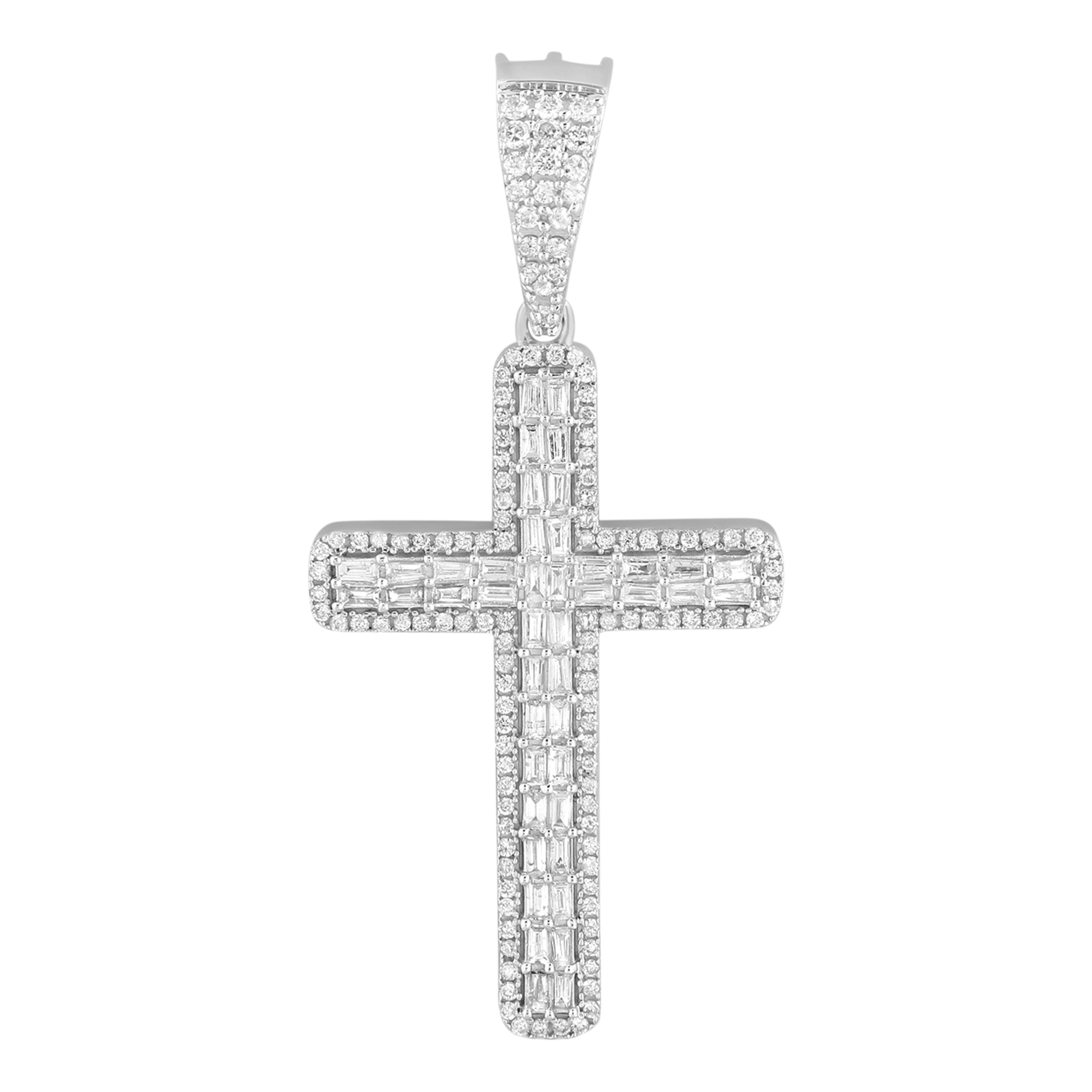 MEN’S CROSS CHARM 1.00CT ROUND/BAGUETTE DIAMOND 10K YELLOW GOLD