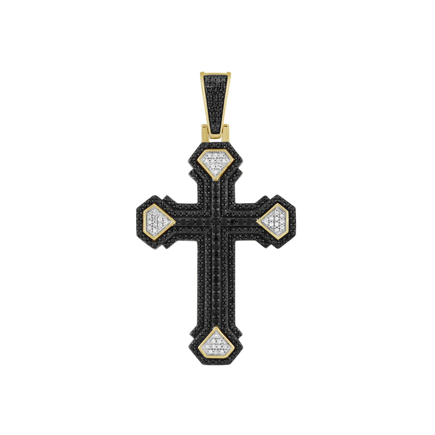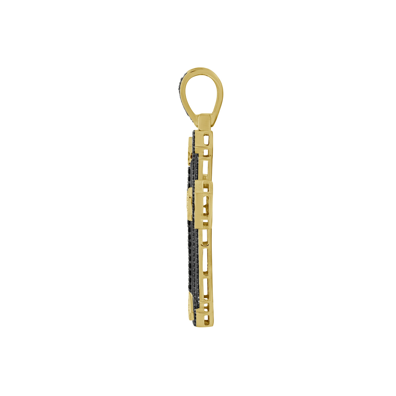 MEN'S CHARM PENDANT 1.00CT ROUND BLACK DIAMOND 10K YELLOW GOLD