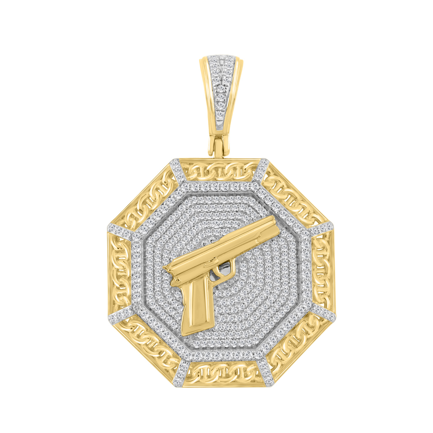 MEN'S CHARM PENDANT 1.00CT ROUND DIAMOND 10K YELLOW GOLD