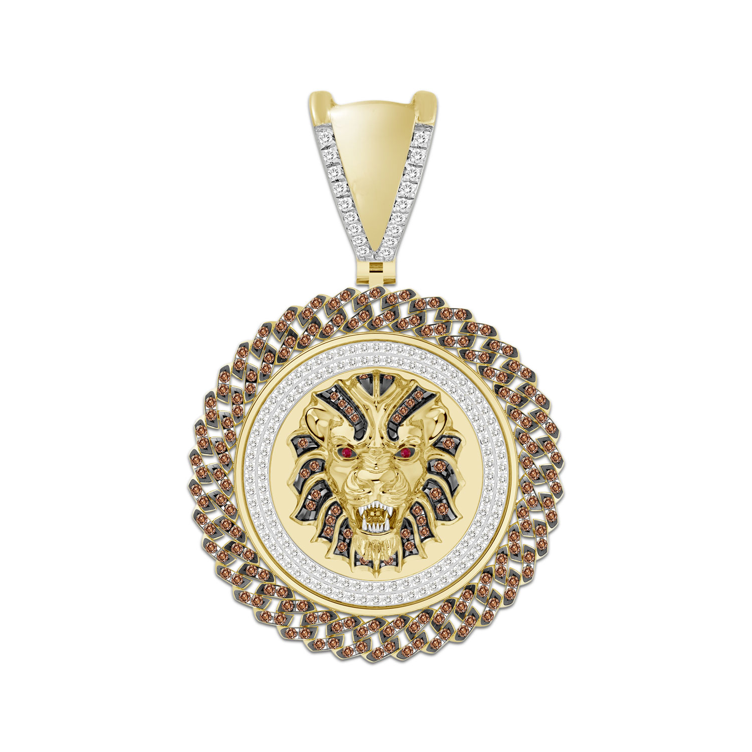 MEN'S CHARM PENDANT 1.25CT ROUND/DARK BROWN DIAMOND 10K YELLOW GOLD