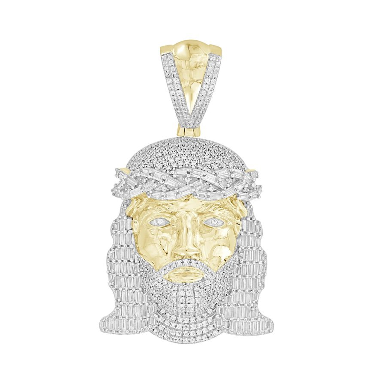 MEN’S CHARM PENDANT 1.50CT ROUND/BAGUETTE DIAMOND 10K YELLOW GOLD