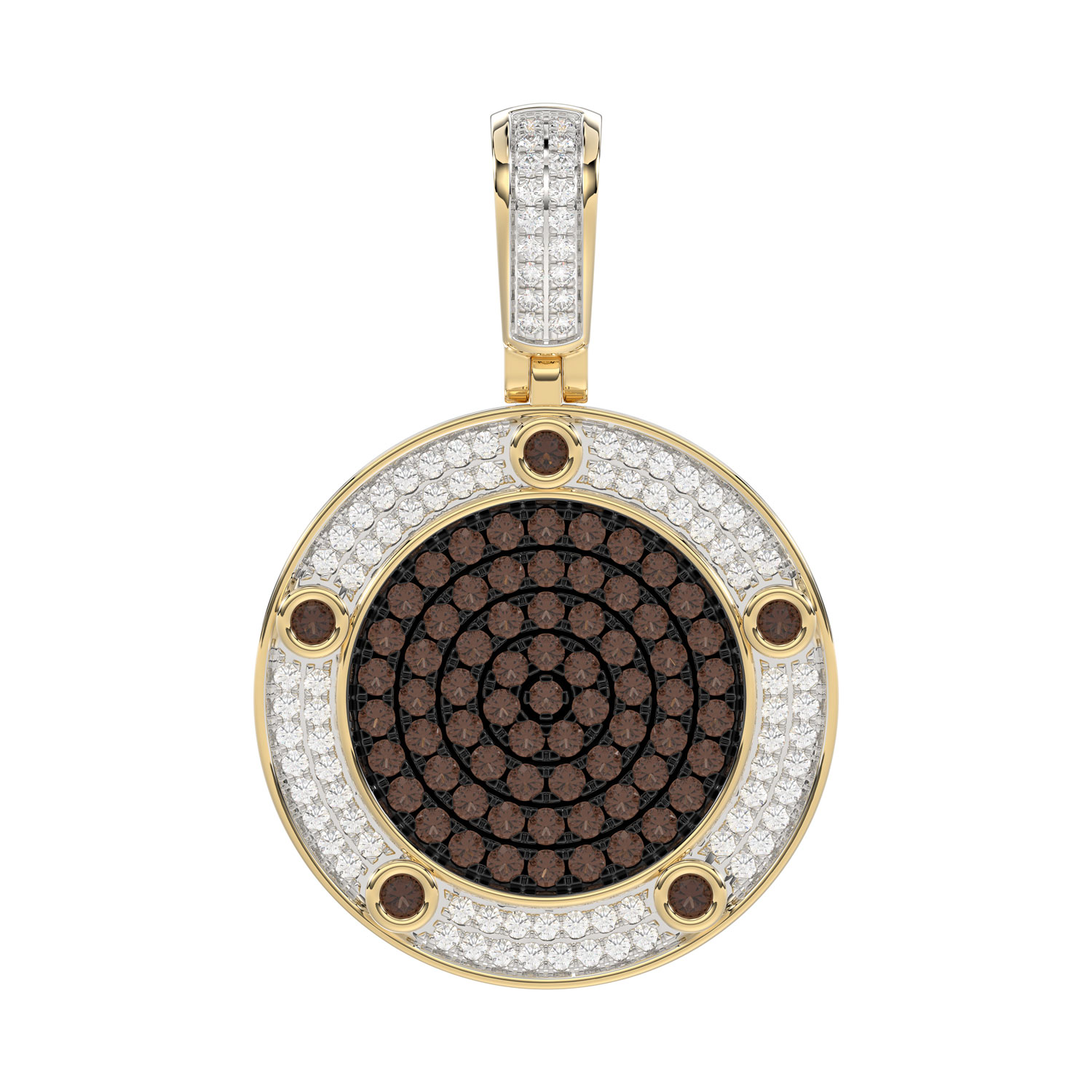 MEN’S CHARM PENDANT 1.50CT ROUND/DARK BROWN DIAMOND 10K YELLOW GOLD