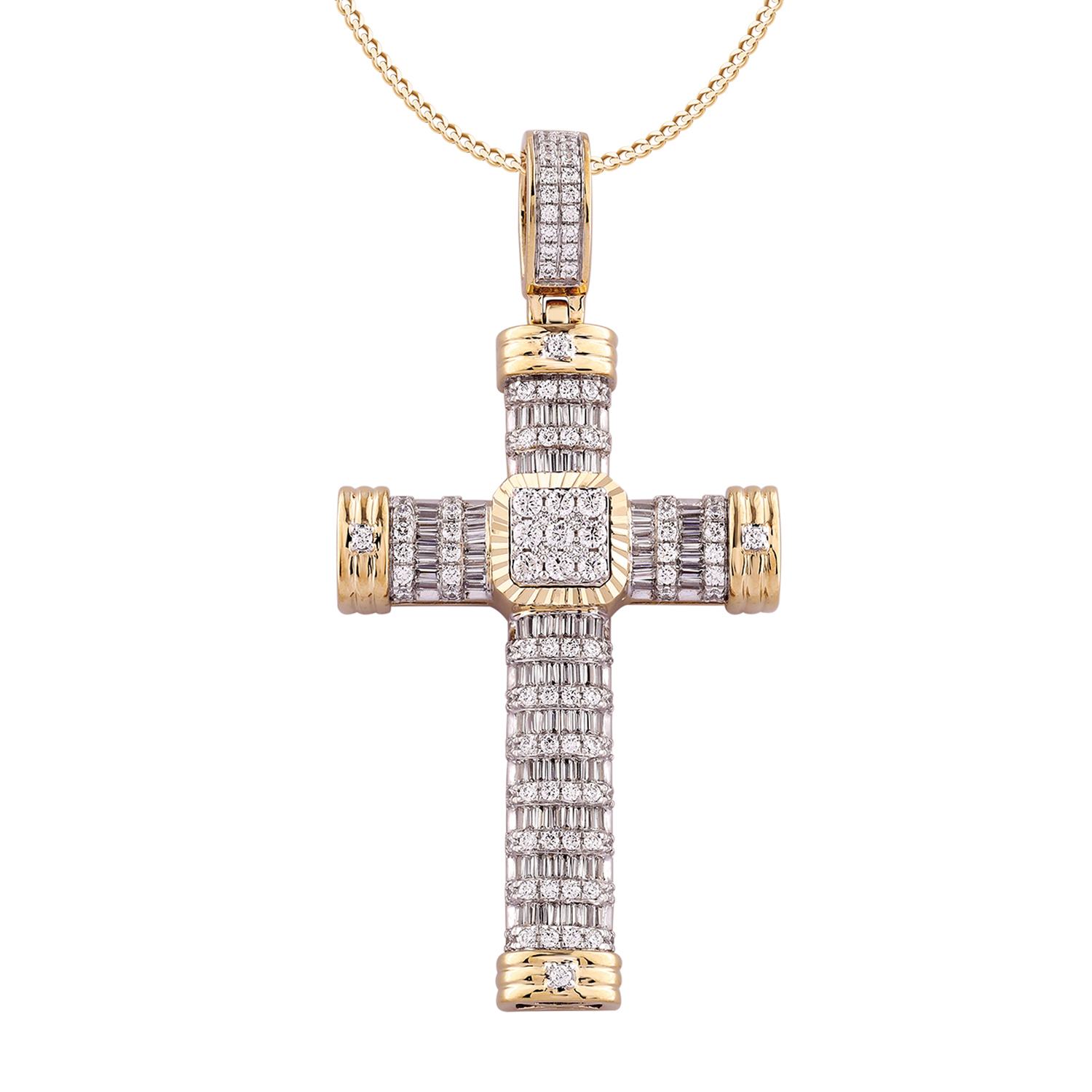 MEN’S CHARM PENDANT 2.00CT ROUND/BAGUETTE DIAMOND 10K YELLOW GOLD