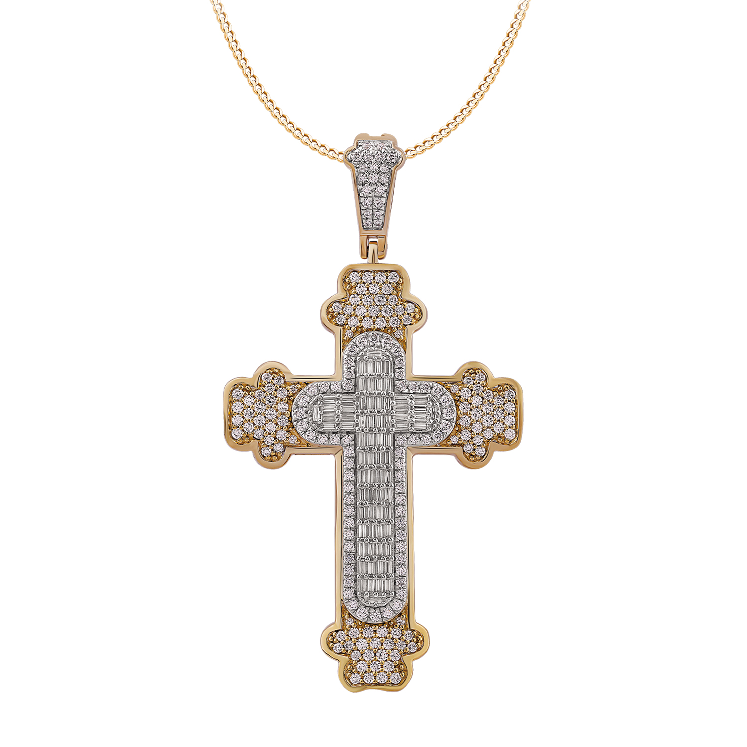 MEN’S CHARM PENDANT 2.00CT ROUND/BAGUETTE DIAMOND 10K YELLOW GOLD