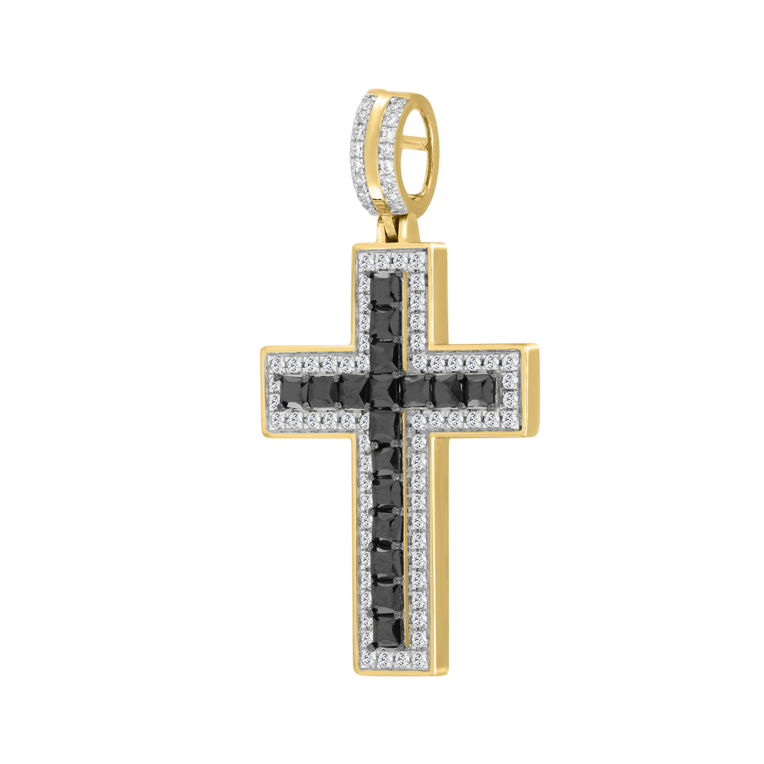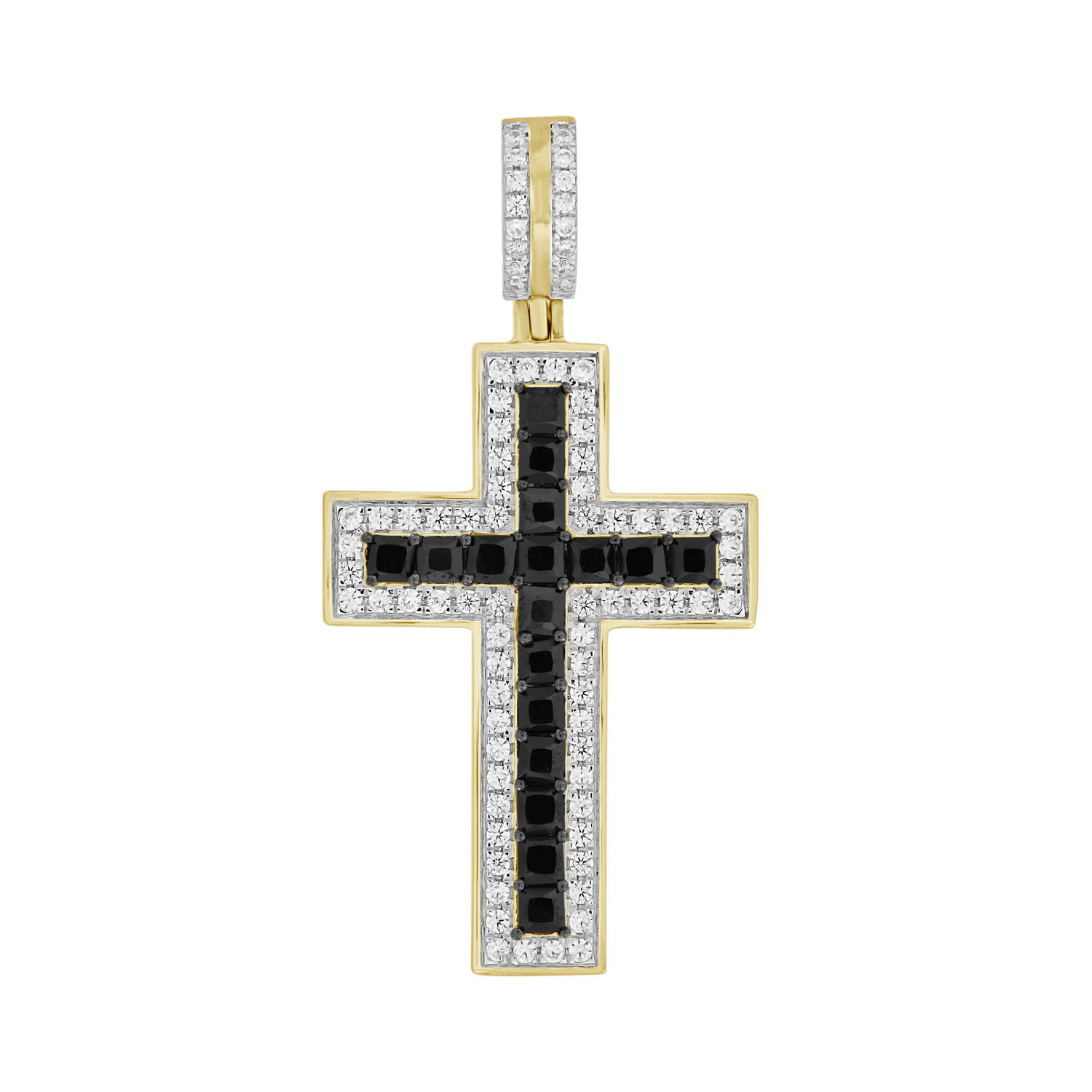 MEN’S CROSS CHARM 1.00CT ROUND/BAGUETTE DIAMOND 10K YELLOW GOLD
