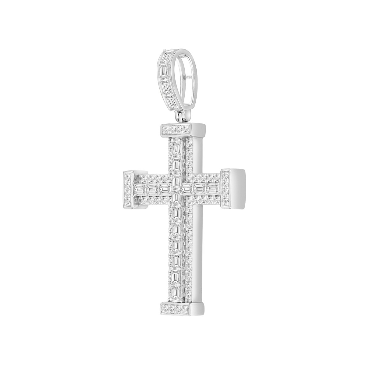 MEN’S CHARM PENDANT 3CT ROUND/EMERALD DIAMOND 10K WHITE GOLD