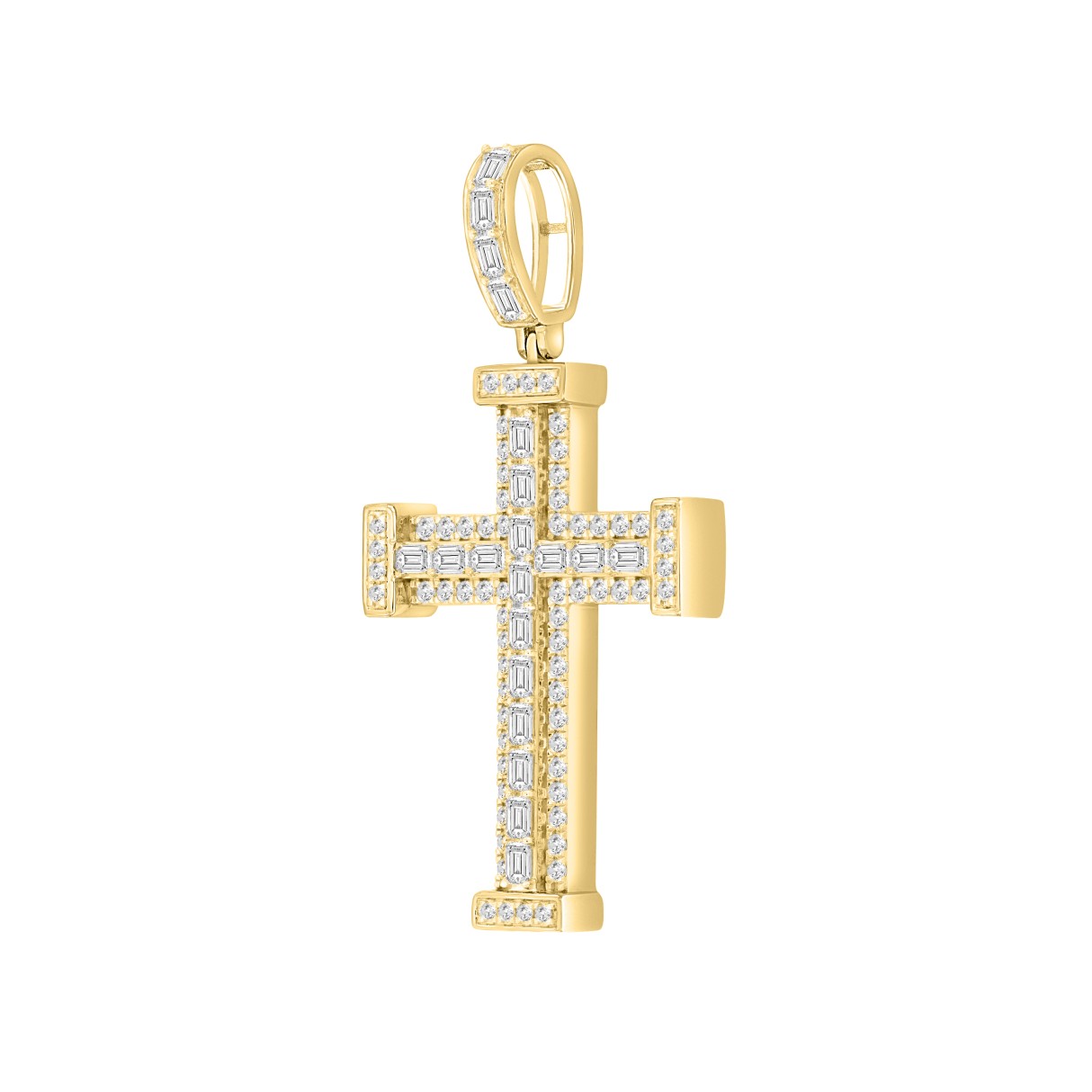 MEN’S CHARM PENDANT 3CT ROUND/EMERALD DIAMOND 14K YELLOW GOLD