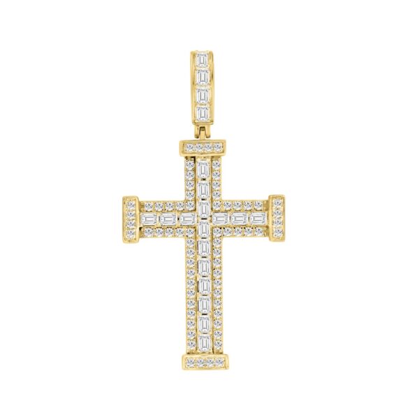 MEN’S CHARM PENDANT 3CT ROUND/EMERALD DIAMOND 14K YELLOW GOLD