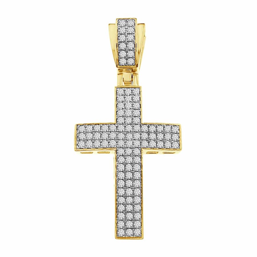 MEN’S CROSS 1.00CT ROUND DIAMOND 10K YELLOW GOLD